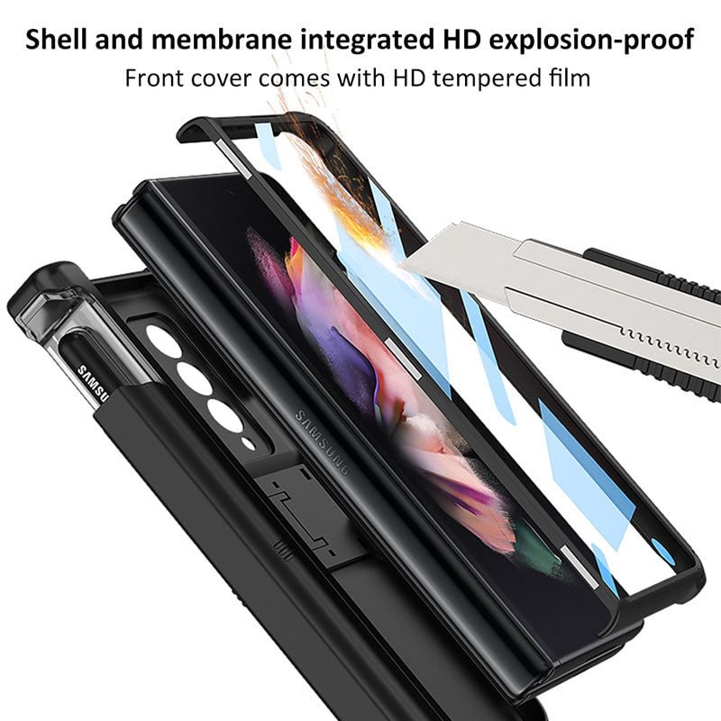 • 【Compatible】: PC Hinged Magnetic Slide Pen Case and Stand Combo, specially designed for your precious Samsung Galaxy Z Fold 3/Z Fold 4, supports wireless charging.