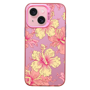 【BUY 4 ONLY PAY FOR 2】Pink Cute Case for iPhone with Unique Graphic Design, Hard Back + Soft Frame Protective Case - Vintage Hawaiian Pink Hibiscus Flower