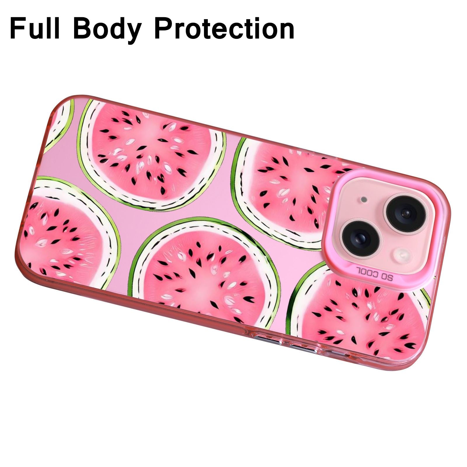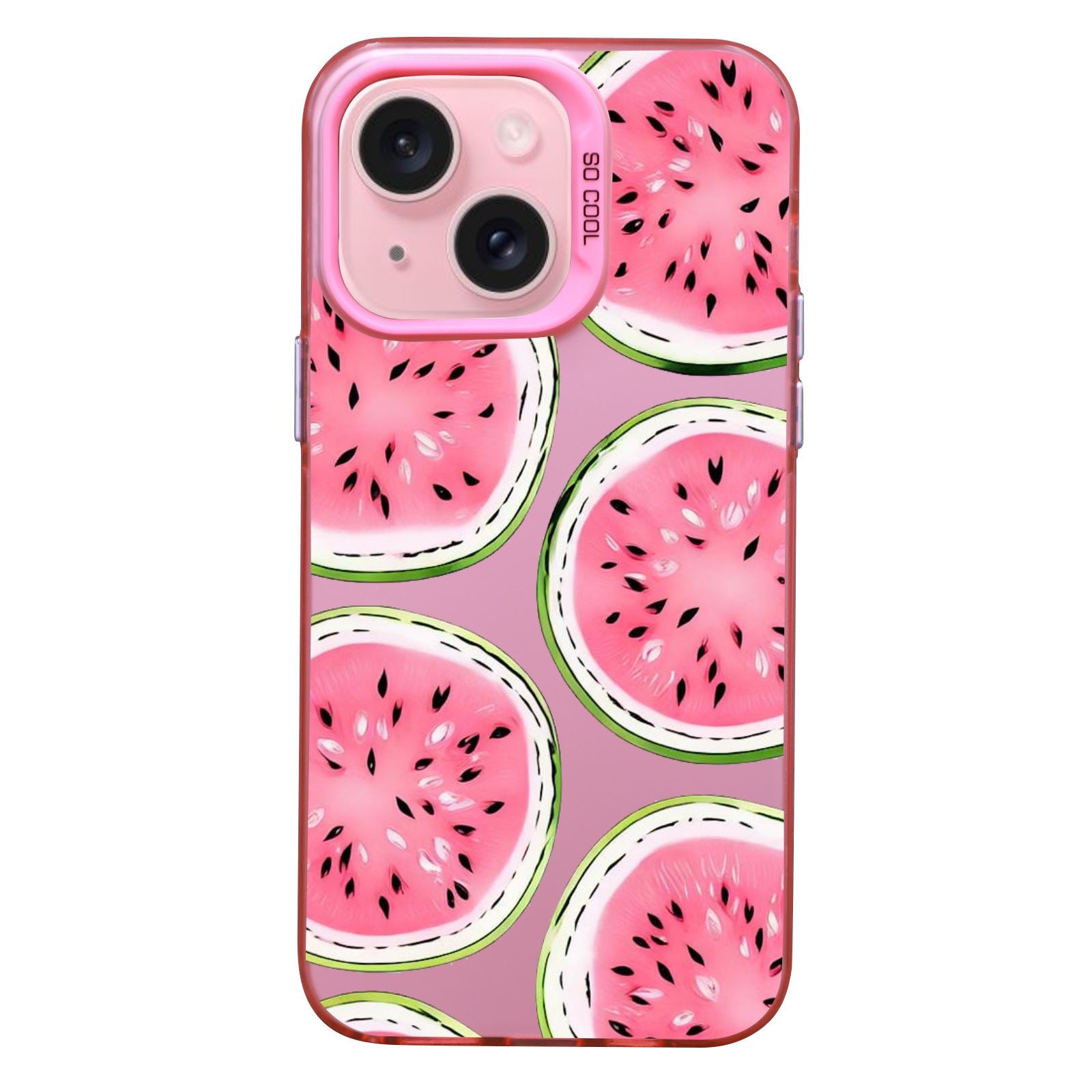 【BUY 4 ONLY PAY FOR 2】Pink Cute Case for iPhone with Unique Graphic Design, Hard Back + Soft Frame Protective Case - Watermelon