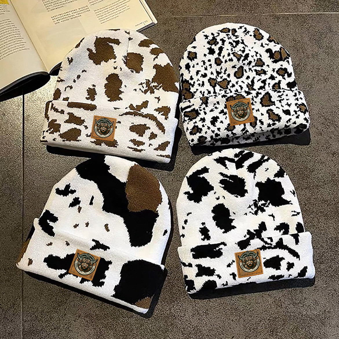 Autumn and winter new retro fashionable cow leopard print knitted hat woolen hat