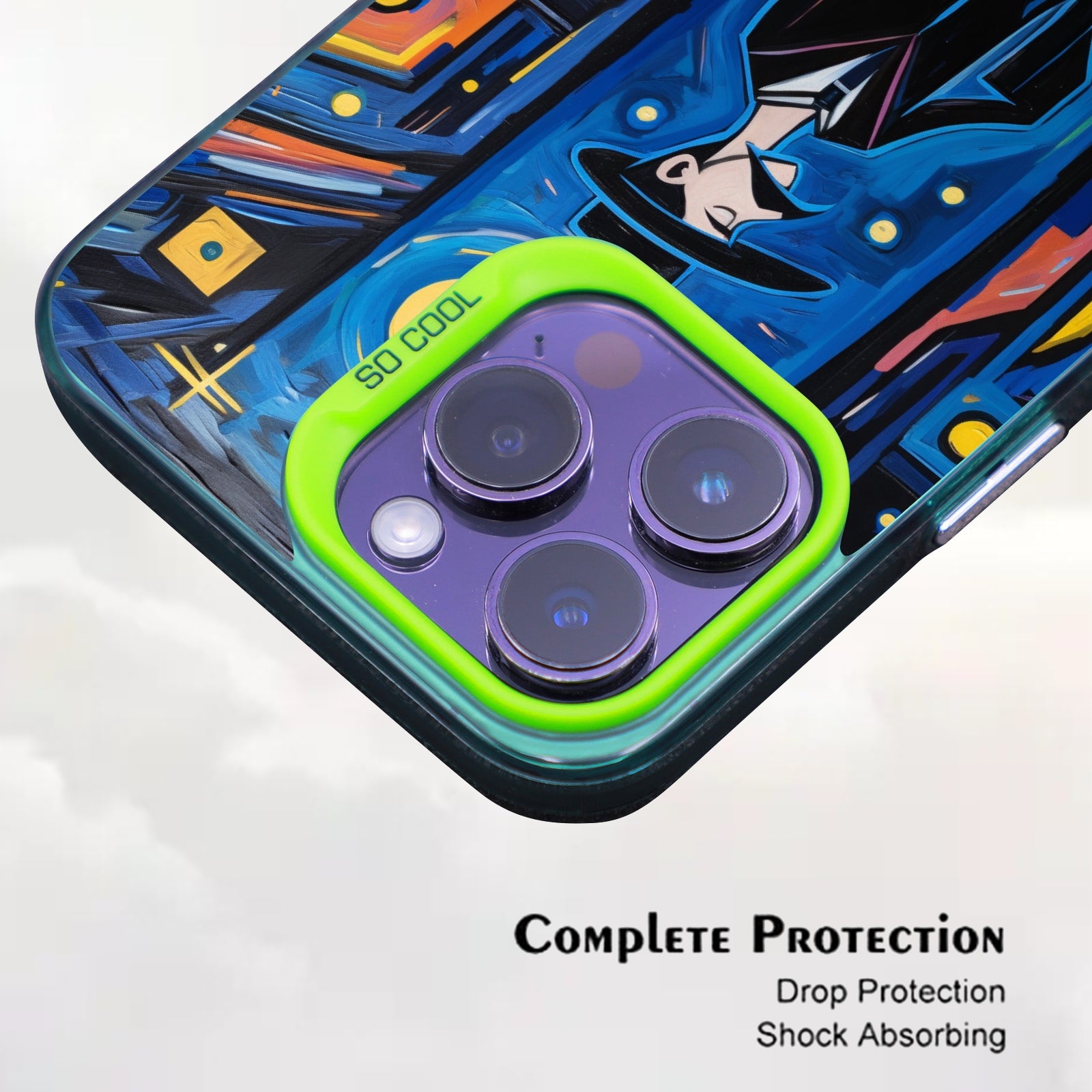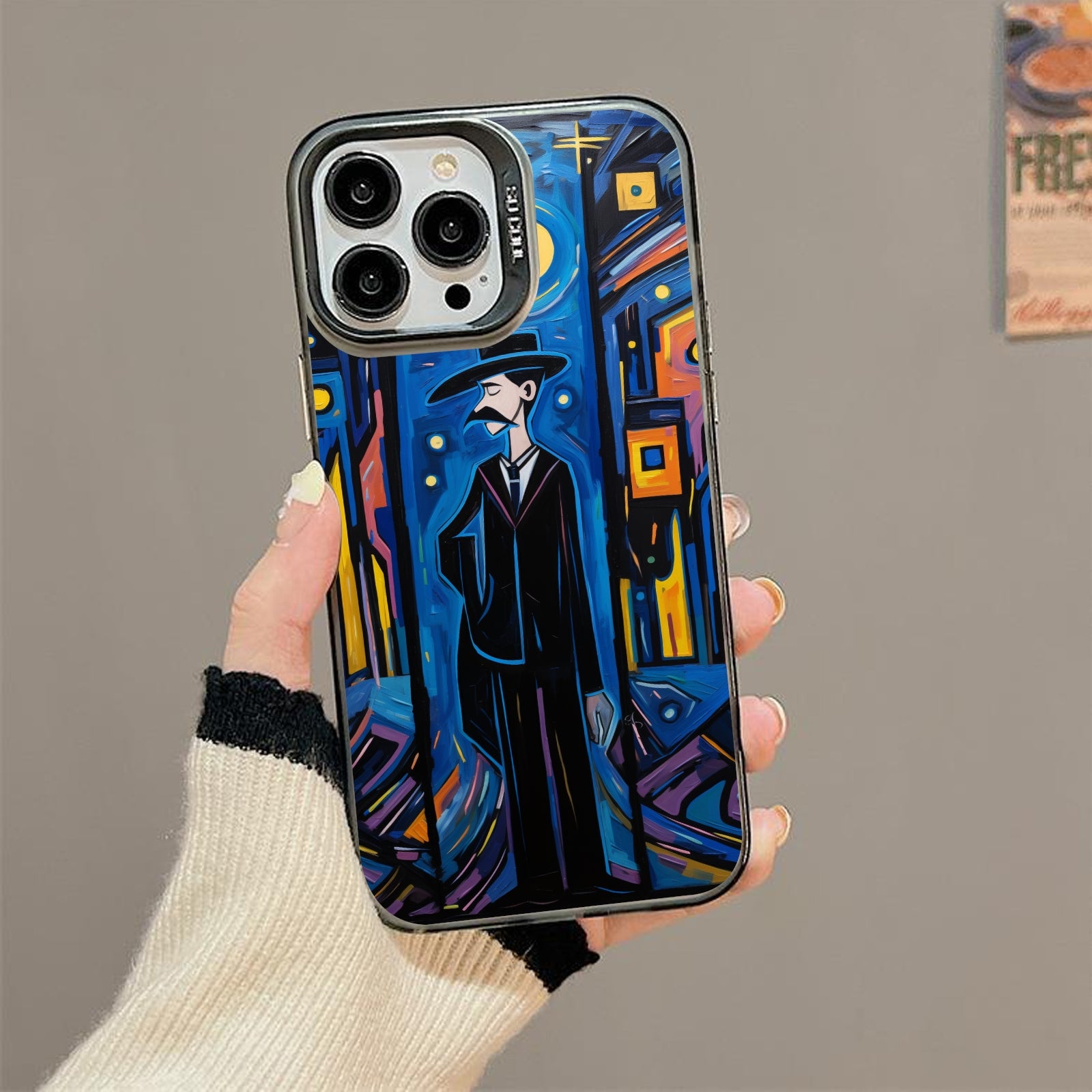 【BUY 4 ONLY PAY FOR 2】So Cool Case for iPhone with Unique Design, starry night Hard Back + Soft Frame with Independent Button Protective Case for iPhone -Abstract oil painting man standing under the moon