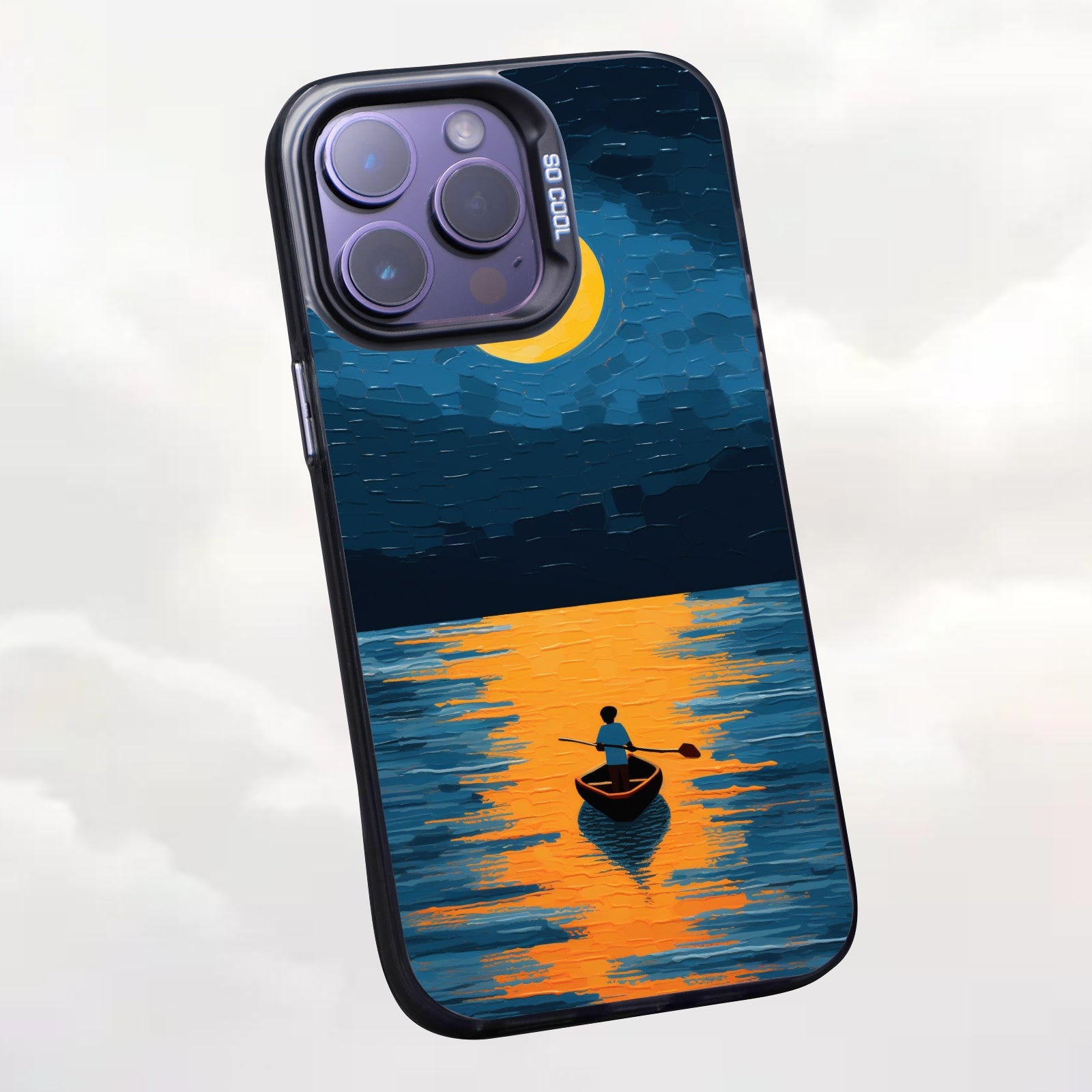 【BUY 4 ONLY PAY FOR 2】So Cool Case for iPhone with Unique Design, starry night Hard Back + Soft Frame with Independent Button Protective Case for iPhone -boat under the moon impressionist3
