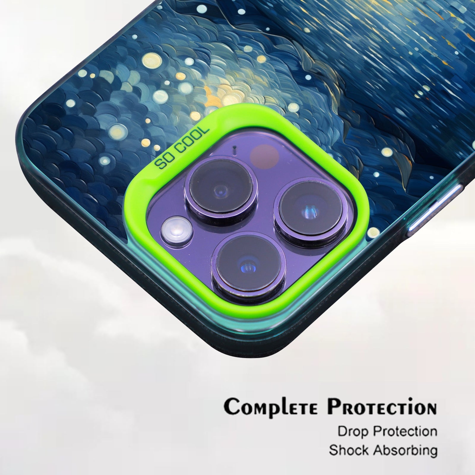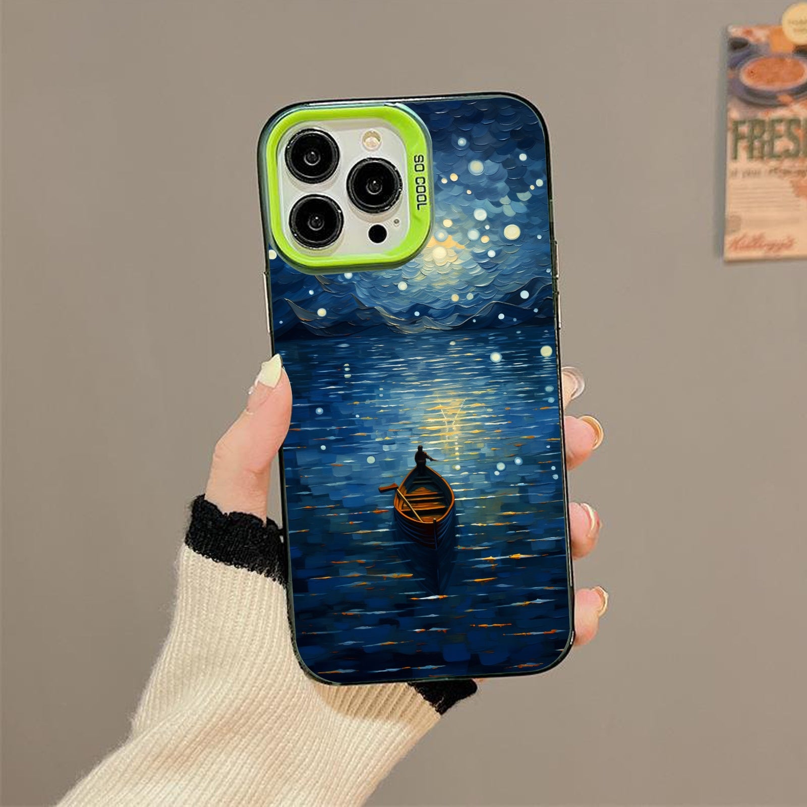 【BUY 4 ONLY PAY FOR 2】So Cool Case for iPhone with Unique Design, starry night Hard Back + Soft Frame with Independent Button Protective Case for iPhone -boating under starry sky