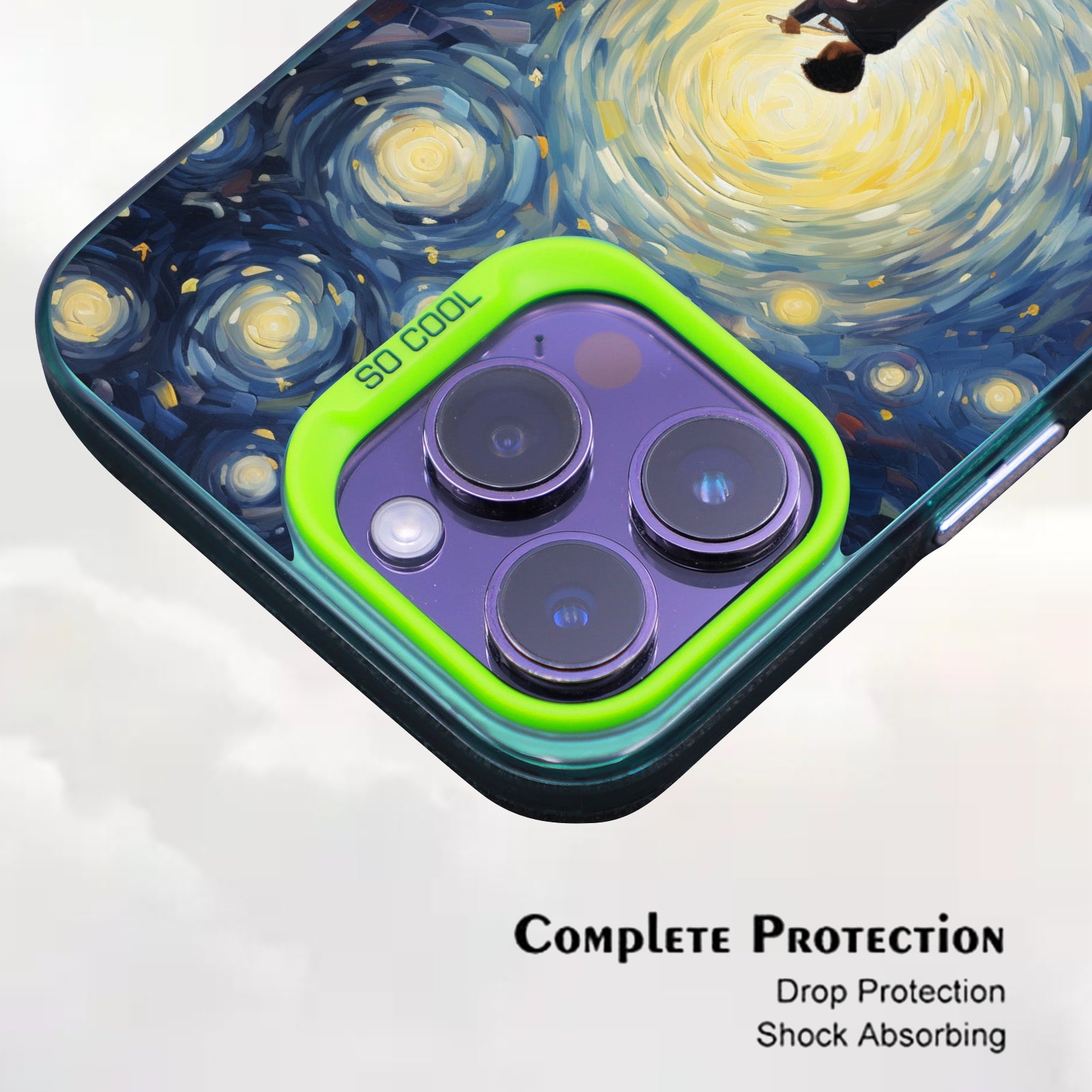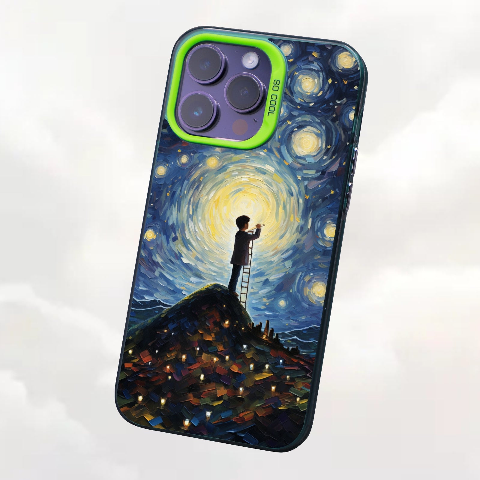 【BUY 4 ONLY PAY FOR 2】So Cool Case for iPhone with Unique Design, starry night Hard Back + Soft Frame with Independent Button Protective Case for iPhone -boy staring at the starry night