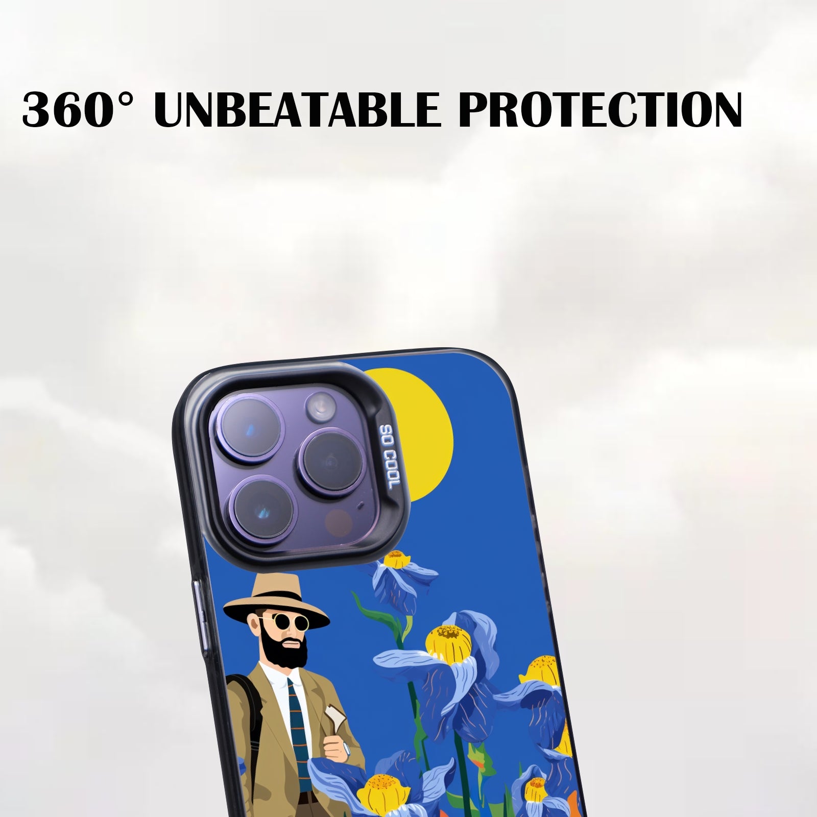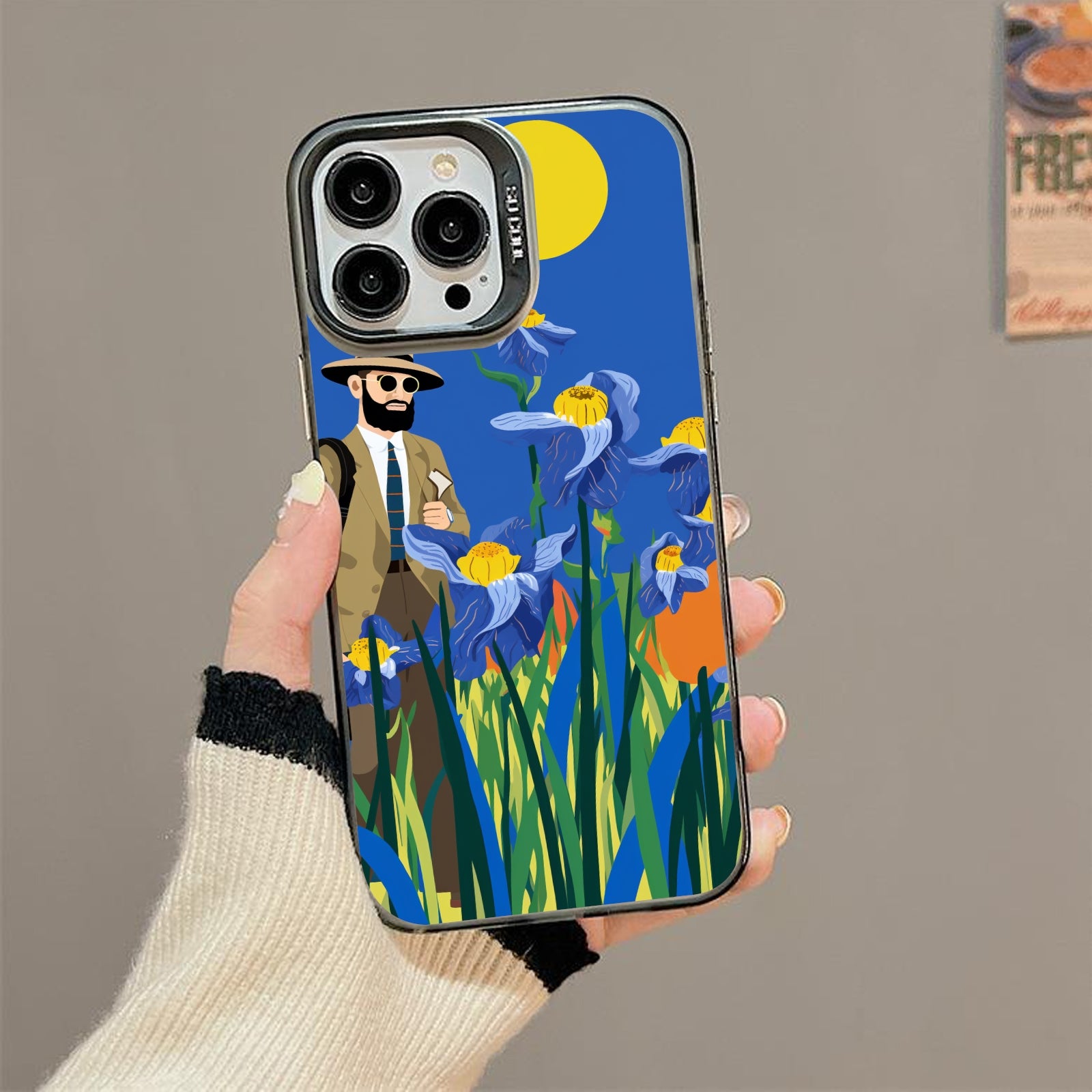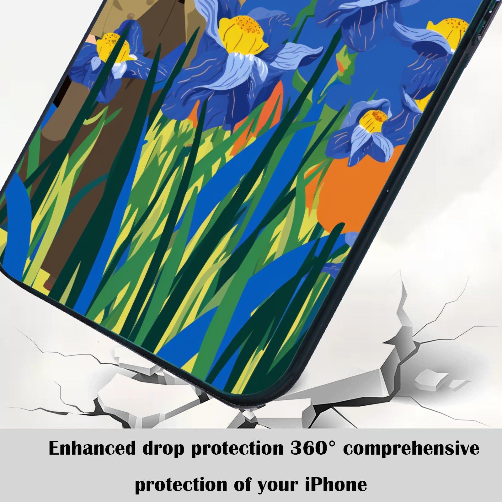 【BUY 4 ONLY PAY FOR 2】So Cool Case for iPhone with Unique Design, starry night Hard Back + Soft Frame with Independent Button Protective Case for iPhone -cartoon cowboy men in the field blue irises