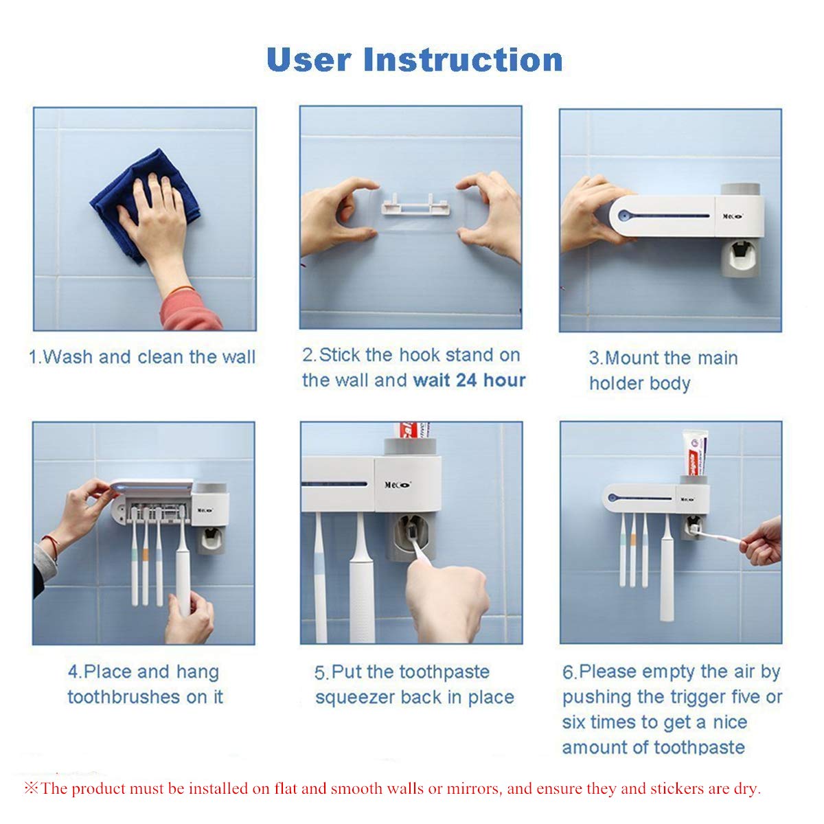 This Toothpaste Dispenser and Toothpaste Squeezer Kit are made from Environment-friendly silicone, harmless to toothpaste tube, Dustproof toothbrushes holder with flip cover design, Anti-bacterial and Easy to clean. Toothbrush holder Wall Mount - comes with enhanced adhesive tapes, easy to install the dispenser and the holder on our wall. Non-nail design won't damage the wall. Hygienic &Economy - Pump every drop toothpaste in tube Keeps everything nice and neat. Great accessory for your bathroom. Way less clutter around the sink.